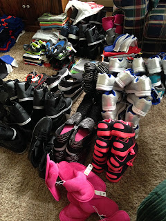 I feel so much better now that I've made some headway in counting and stashing at least some of the donations we got in early December. Now I can separate packages of socks and count and store them as a real Christmas gift.